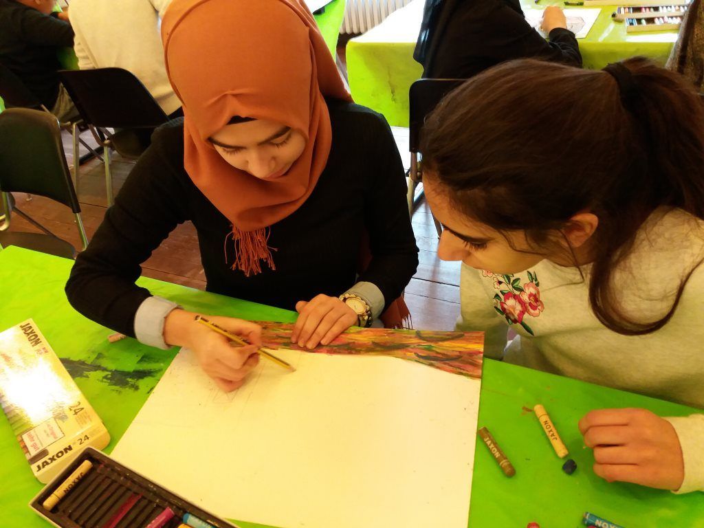 Anschließend gingen wir in einen Raum, in dem das Esszimmer von Hablik nachgebaut war. Alle Wände und die Decke waren sehr bunt und mit geometrischen Formen bemalt. Am Ende konnte jeder von uns selbst ein Bild zum Thema Universum malen. Alle Bilder waren toll, das von Muhamed fand ich jedoch am lustigsten.