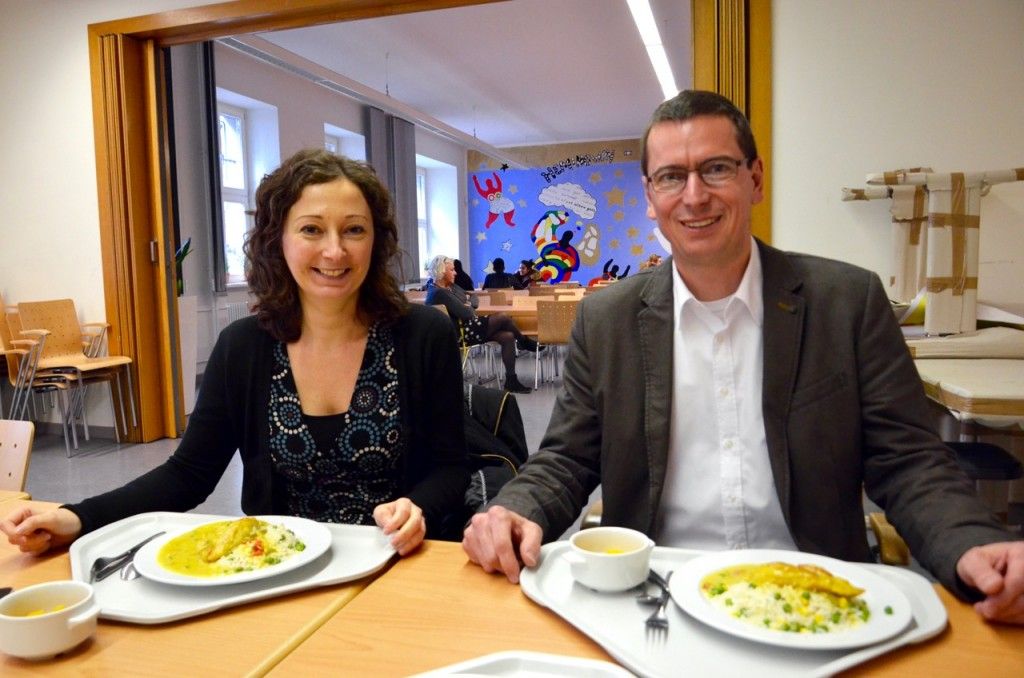 Bei einem Schulrundgang informierte sich Frau Pop über den baulichen Zustand der Schule, die Essensversorgung in der Mensa und besuchte den Kursunterricht in der Lehrküche.