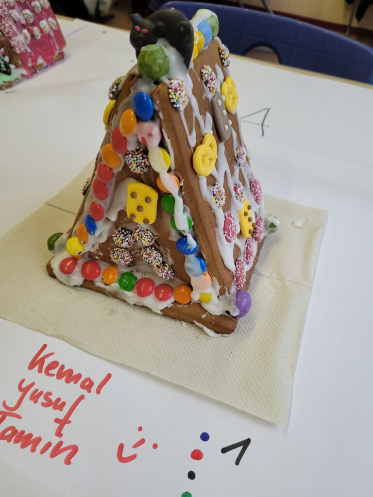 Am letzten Schultag des Jahres 2022 verwandelte sich unser Klassenraum 105 in eine Weihnachtsbäckerei.  Unter dem Motto ” Wem gelingt es, das schönste Lebkuchenhäuschen zu gestalten?” wetteiferten wir in mehreren Gruppen.  Wir konnten unserer Kreativität freien Lauf lassen, es hat Spaß gemacht. Die Ergebnisse können sich sehen lassen und schmecken dazu noch gut, sogar noch nach den Ferien. Für andere Klassen unbedingt zur Nachahmung empfohlen!