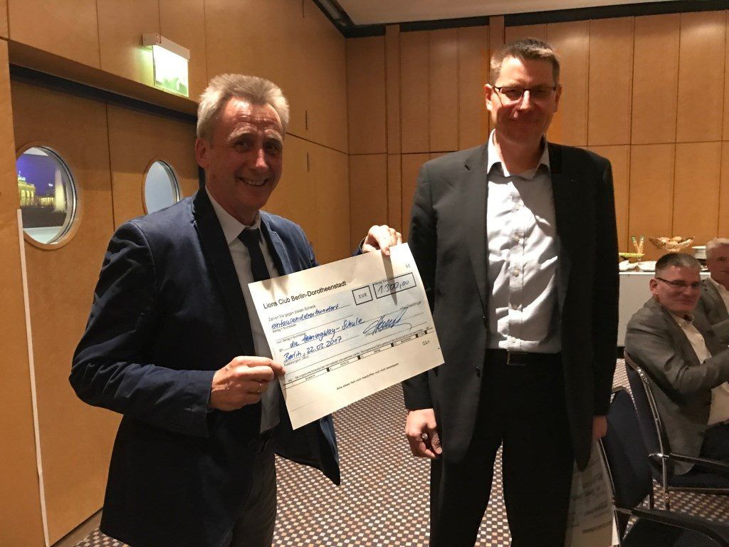 Die diesjährige Zuwendung erfolgte im Rahmen einer Vorstellung der durch den Lions Club geförderten Projekte durch eine symbolische Scheckübergabe. Die Schulleitung der Hemingway-Schule bedankt sich für die Aufmerksamkeit und die Anerkennung der Arbeit des gesamten Kollegiums unserer Schule durch die versammelten Mitglieder.