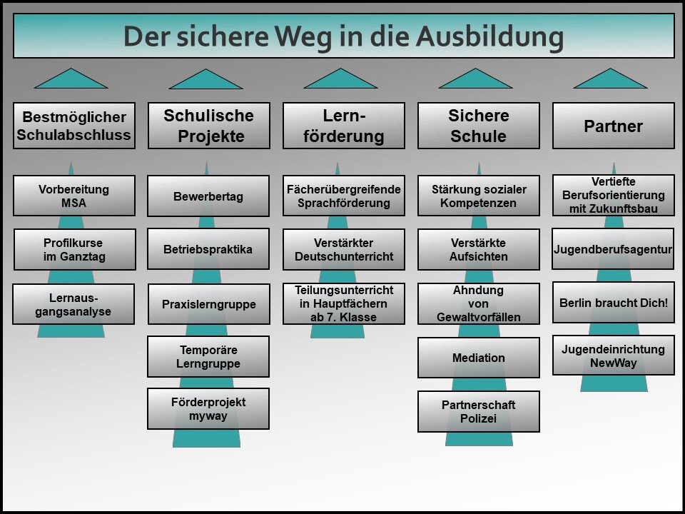 Wir sehen es als unsere Aufgabe an, unsere Schüler:innen sicher und mit dem bestmöglichen Schulabschluss in die Ausbildung zu führen.