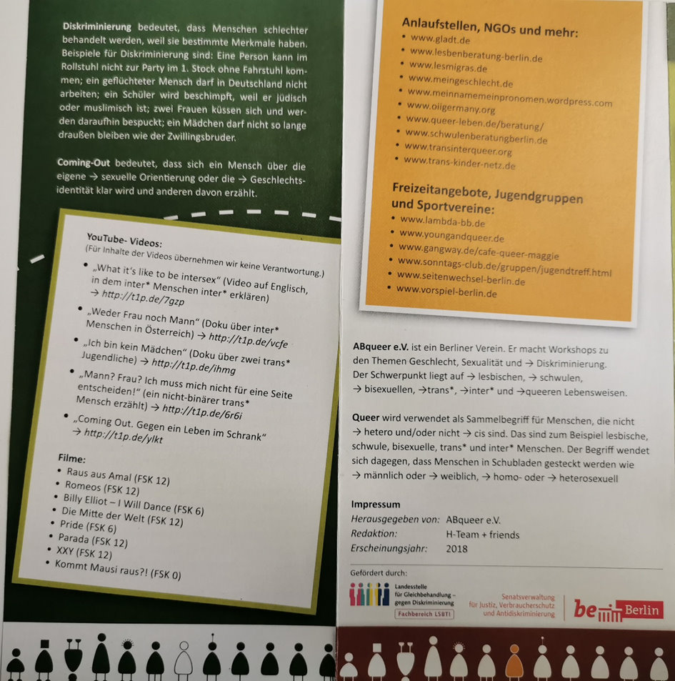 Um dieses wichtige Thema der Diversität noch mehr aufzugreifen, haben wir Abqueer e.V. zu uns eingeladen. Sie haben unseren Schüler:innen der Klasse j in 120 Minuten einen noch tieferen und umfangreichen Einblick in die Diversität der Geschlechteridentität gegeben. Hierfür kamen zwei Dozent:innen in den mittzwanziger Jahren, die beide queer sind und unseren Schüler.innen zudem ihre persönliche Geschichte erzählt haben.